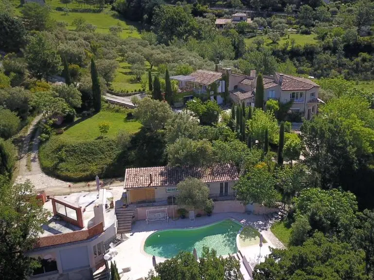 La chambre de 19m2 située à quelques pas de la piscine jouit d'une terrasse privative avec vue sur les chênes centenaires.